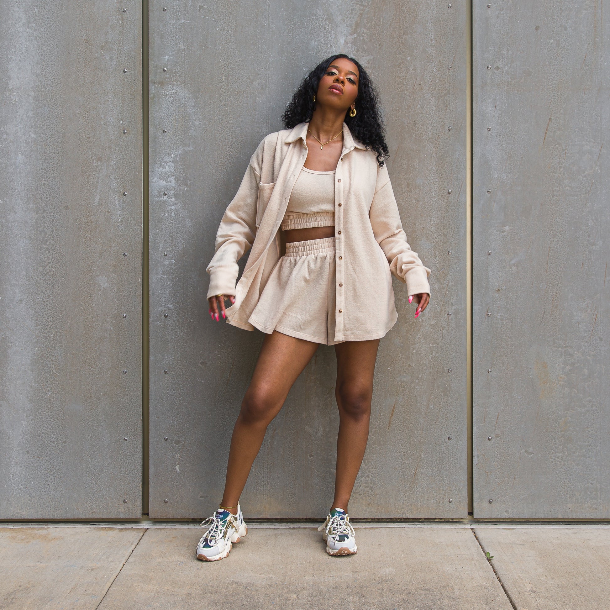 This not so basic - basic is a MUST. Its a 3 piece set with infinite versatility. This cozy and chic set is perfect for a Coffee Date, Casual Lunch, Running Errands or Headed to the Airport; it covers all bases! To re-style consider wearing the pieces separately or mix and match with other closet staples.